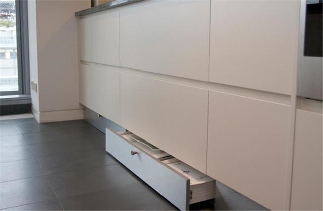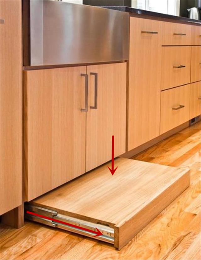 柜子的最下面部分,也被日本人利用,专门设计踢脚抽屉,扩大储物空间。