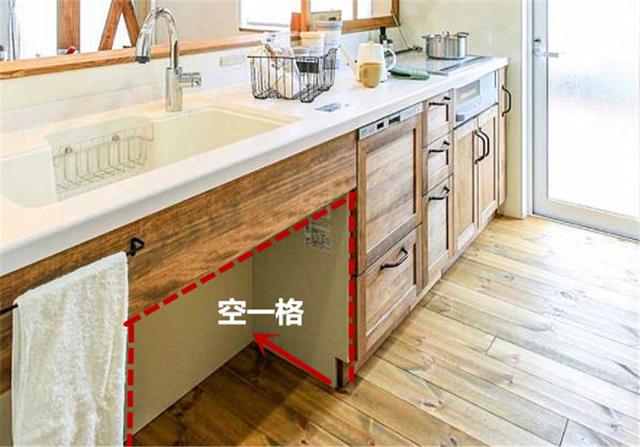 还有一种日本人也很流行的做法,就是空出水槽,不做柜子,因为水槽下难免潮湿发霉,不如用它装垃圾箱。