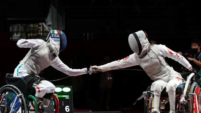在此次残奥会中获得轮椅击剑女子花剑团体决赛冠军的周景景,