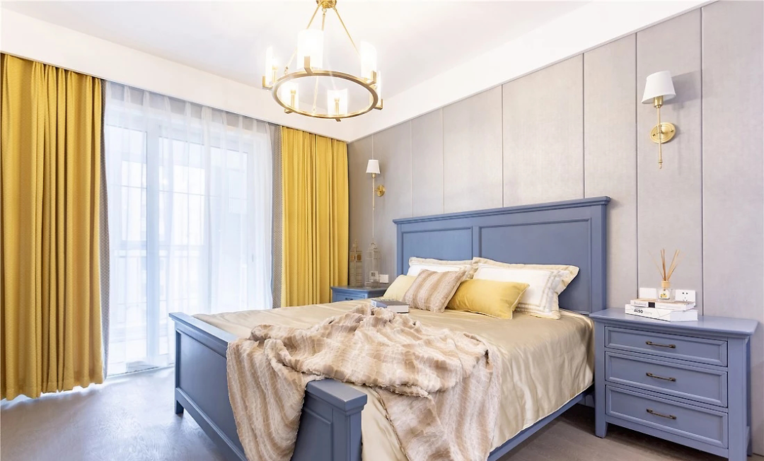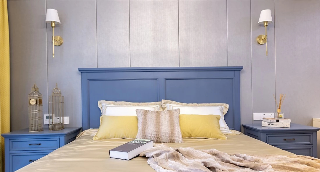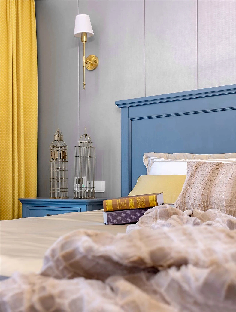 高明度的蓝色与黄色调提亮空间,冷暖相宜中质感优雅而柔和。