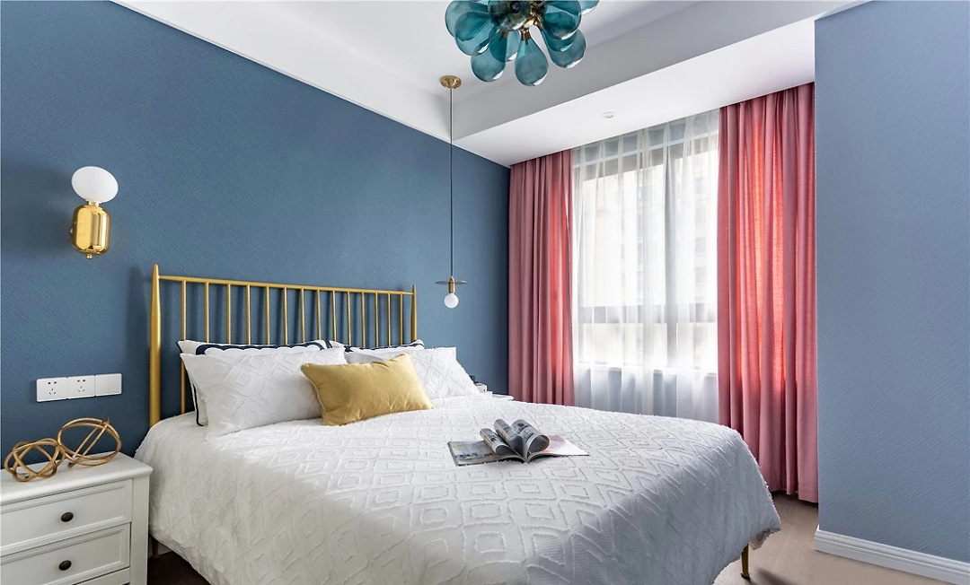 主卧的色调也是一大亮点,区别于一般主卧沉稳的色调,设计师选择了更加亮丽的配色,让整个空间更具个人色彩。