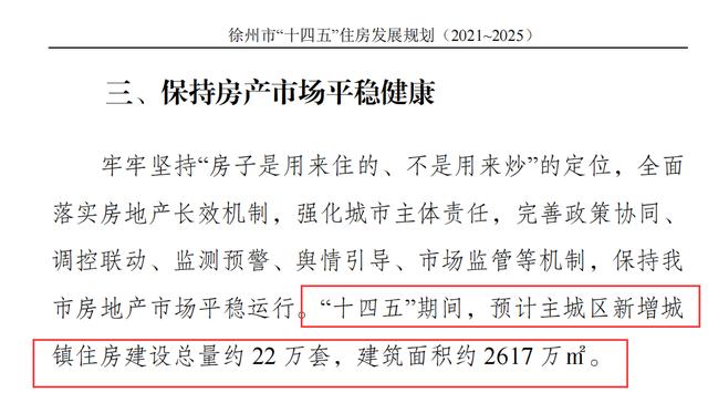 而徐州市区则新增22万套城镇住房,建筑面积2617万㎡。