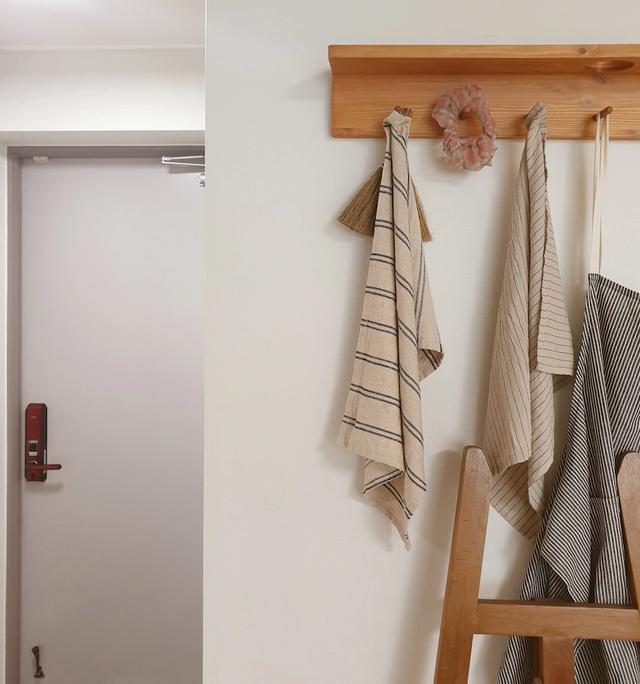 没有玄关或玄关较小的户型,也可随业主学习利用墙面的空间装挂钩,不占空间做收纳。