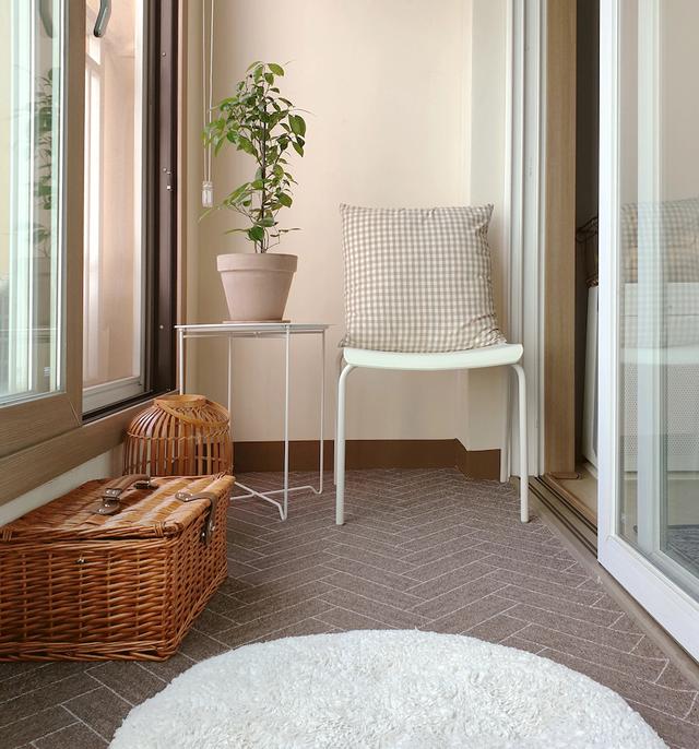 卧房有阳台,不用不常用来洗衣服和晒太阳,而是变成了休闲区。这儿还铺了地板,还有摆设了桌椅等,丰富了日常生活。