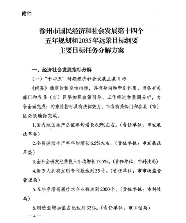近日,徐州市人民政府官网发布了《建立健全“十四五”规划实施机制的通知》,事关未来徐州市国民经济和社会发展目标。