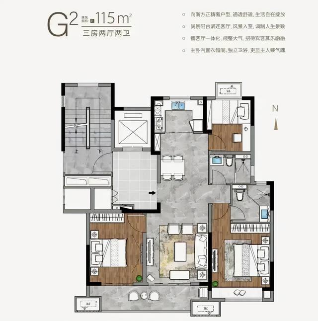 建面约115㎡三室两厅两卫↓↓↓
