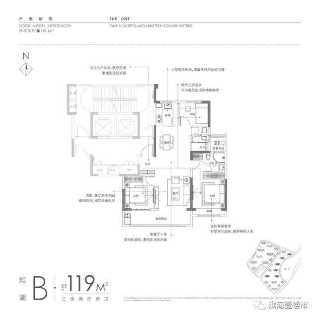 建面约119㎡三室两厅两卫↓↓↓