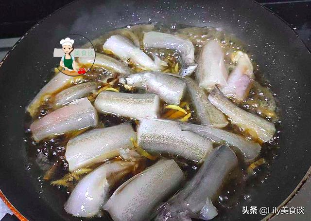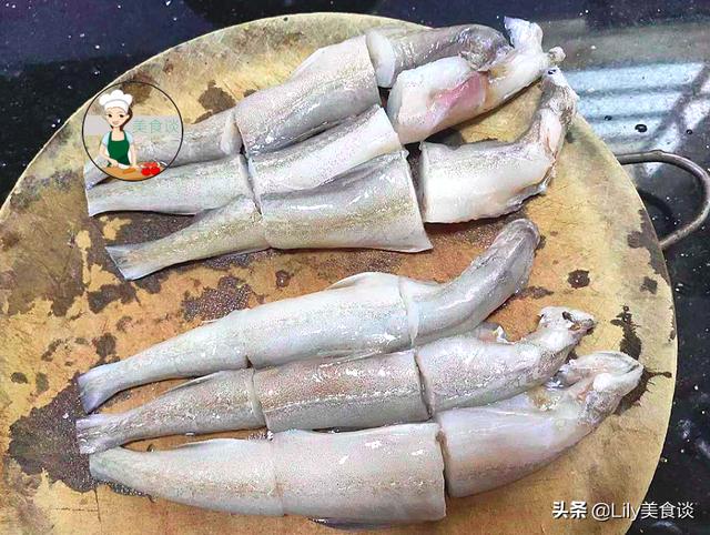 2、九肚鱼洗净切成小段待用,这里切三段。