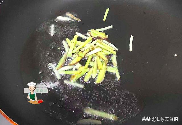 3、热锅凉油,将生姜大蒜下锅煸炒出香味来。