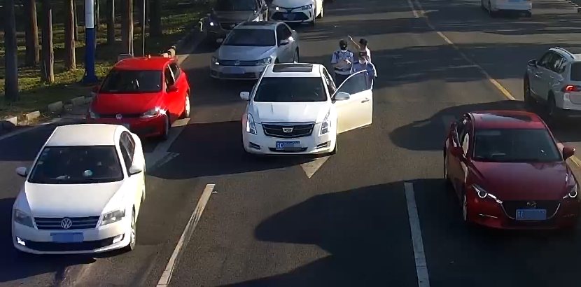 就在民警正准备破窗时,驾驶人突然打开了车门,摇摇晃晃走下了车。随后,交通民警也来到现场,驾驶人见到交警后嘴里反复地说:“我到现在也不知道你们为什么查我。”