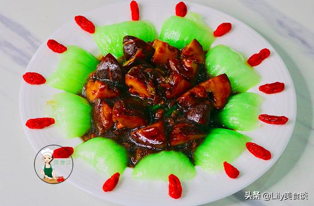 10、在盘子的四周摆放少许的枸杞做装饰,也可以用小米辣来替代。上桌即可享用,这样一道家常版的:蚝油香菇油菜就做好啦,这道菜色香味俱全,看着就非常美味,蚝油香菇鲜香嫩滑,不放肉味道也很鲜甜,色泽红亮诱人,开胃好吃又下饭,营养也很丰富,适合全家人一起享用,摆盘的造型也非常漂亮,寓意:花好月圆,中秋节家宴记得做给家人吃,营养好吃寓意又很好。简单营养美味的做法分享给你,喜欢可以收藏试试哦。