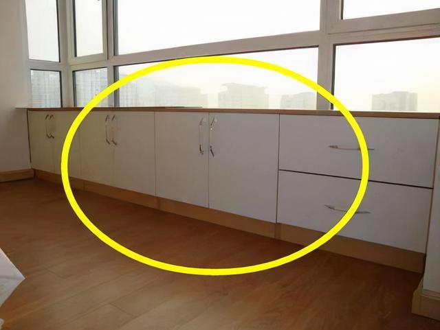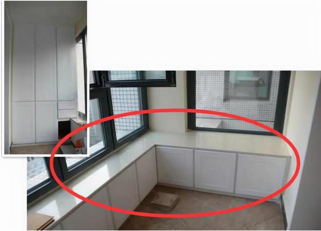 设计阳台地柜的前提是,封闭阳台。开敞式阳台不适合设计橱柜,否则经常受到日晒,木制橱柜很容易发霉。