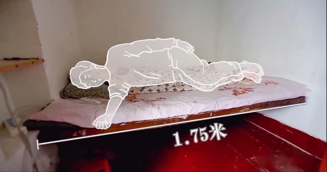 小黄的卧室,是家里最大的一个,即使这样小黄的卧室面积也只有5平米,这张床是用三脚架搭起来的简易床铺。除了床外,小黄的卧室里还有一张小桌子。