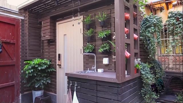 室内采用防腐木门,增加墙面的绿植,让空间变得世外桃源。为节约空间,热水器、洗衣机均装在室外,进行防水隔热处理。