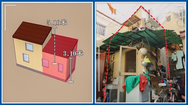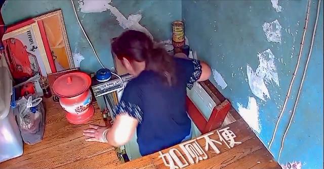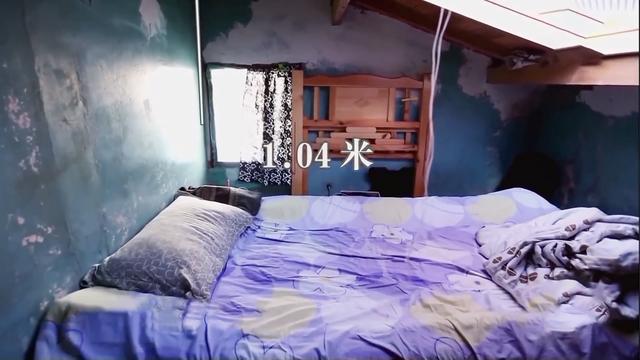 小黄爸妈的卧室在二楼,最高点仅有1.04米,正常人只能爬上爬下出入,蹲着也很费劲。有限的空间让小黄爸妈每天上厕所很麻烦。