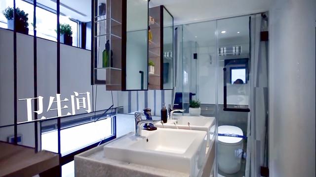 洗手间设计了两个洗漱台,为了节省更多的空间,设计师们在市场上寻找市场上最小的马桶。尽管尺寸比普通的要小5厘米,但功能依然强大。