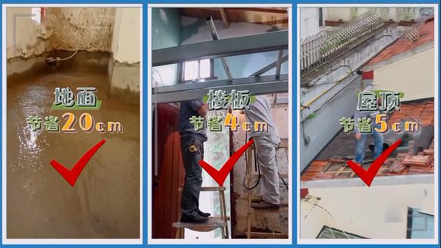 设计者原本计划在屋顶上做一个吊顶,但是由于需要更大的空间高度,所以放弃了这种想法,转而采用防水、隔音、隔热等工程,这样可以节省5厘米的房屋高度。三次施工后在屋内增加了29厘米的空间,使原来的客厅从1.8米增加到近2.1米,使客厅变得更宽敞。