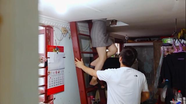 家里两间隔断的阁楼只能靠一把近90度的简易木梯子上下走动,小黄的母亲每天都要忙得费力,这非常危险,有可能会踩空,必须改造。