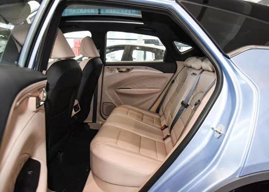 侧面可以看到,悬浮式的车顶和溜背式的设计这都是时下非常热门的设计元素,看起来具有很强的时尚感。车侧的两条特征线让人印象深刻,流动且充满力量感。隐藏式门把手在现在的电动车中非常常见,科技感很强。18英寸的轮毂看起来比较普通,但是实际的性能表现还是不错的。