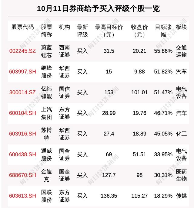 4丨整点投资丨38只个股获券商关注,蔚蓝锂芯目标涨幅达55.86%