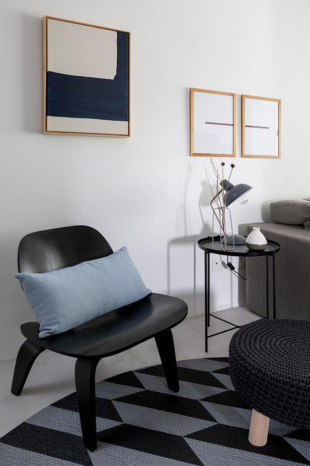 整个客厅设计是一种简约风格,用乳胶漆做了一个半墙,让整个空间不那么单调。由于起居室空间较小,所以也没有在这里摆茶几,只在旁边摆了边几。