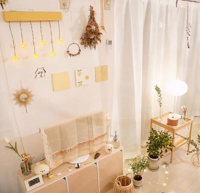屋子很小,但装饰性和装饰性都不少,这也是一位少女的心。亮堂内还布置了许多灯光,每一盏灯都给家庭带来不同的效果,一个温馨的家,少不了灯光的渲染。