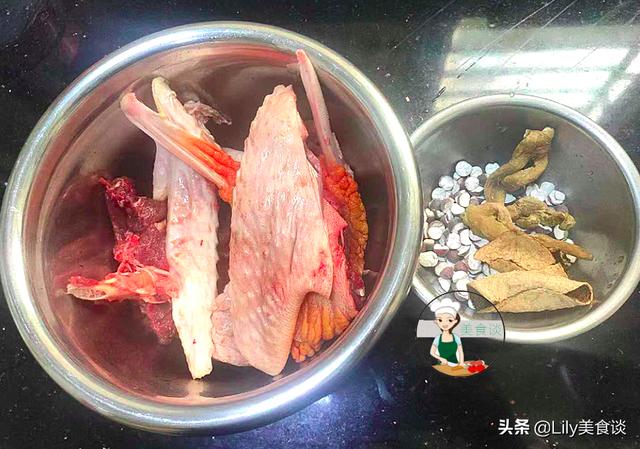 准备食材:老鸭半只、玉竹少许、陈皮适量、芡实适量、生姜少许。