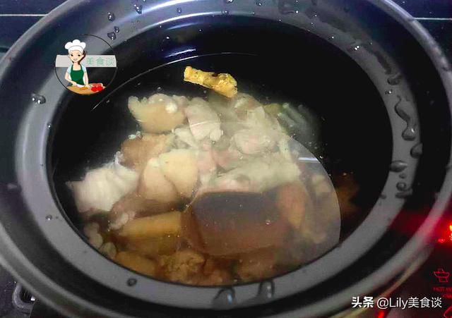 3、这种老火靓汤,盐一般都要等出锅前再放,这样汤的味道更鲜甜,盐放早了会影响汤的口感。