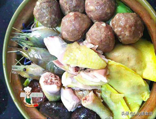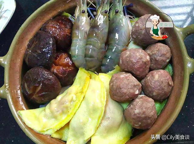 1、这里的很多食材都是提前准备好的,别看就只有一锅菜,但里面的食材很丰富的,蛋饺和鸡肉都是提前做好的。