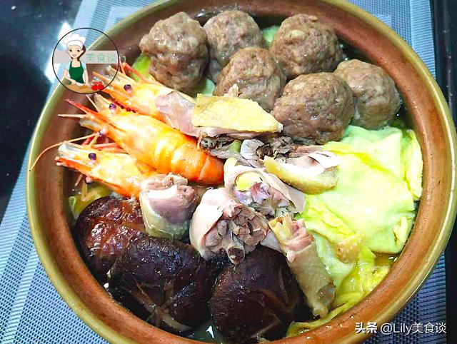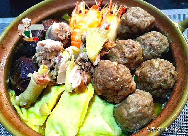 这里要分享的砂锅菜是:盆菜。盆菜是是广东和香港等地的饮食习俗,也是一种杂烩菜式,传统的盆菜用木盆或锑盆盛载,在逢年过节、家有喜事、新居入伙、祠堂开光等场合都少不了盆菜的身影,一桌就上一大盆菜,里面有各种各样的食材,经过一点的层次摆放,每一层不同的味道,一桌人围坐一起吃,津津有味。盆菜会用到很多食材,根据自己的喜好来添加,一般都会包括萝卜、枝竹、鱿鱼、炸猪皮、冬菇、鸡、肉丸等等,现时不少盆菜还会加入更贵的食材包括花胶、大虾、发菜、蠔豉、鳝鱼等等,不仅味道鲜美,还有“盆满钵满”的吉祥意义。