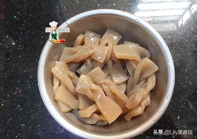 2、魔芋花卷取出来,冲洗干净待用。(这里是买现成的魔芋花卷,我们可以自己做,也可以直接切片炒即可,怎么方便怎来)。先沸水下锅焯水一下捞起沥干水分待用。