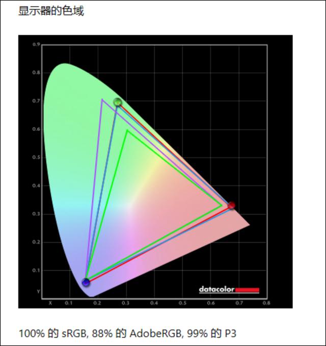 而在校色仪测试中,掠夺者战斧500的屏幕色域覆盖为99% DCI-P3、88% AdobeRGB、100%sRGB。经常看测评的同学知道,100% DCI-P3色域覆盖要比一般的高色域屏笔记本屏幕更广。色准方面,在48色标准色彩序列测试中,屏幕Delta E平均值为2.36,色彩还原比较准确,游戏娱乐之余,也可应对普通的图片后期处理工作。