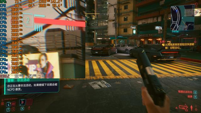 而对于《赛博朋克2077》这类优化烂的游戏,在高分辨率下可开启DLSS选项来提升帧速表现。这是4K最高画质下开启DLSS平衡之后,游戏平均帧速从28fps上升到了50fps。