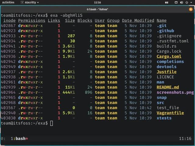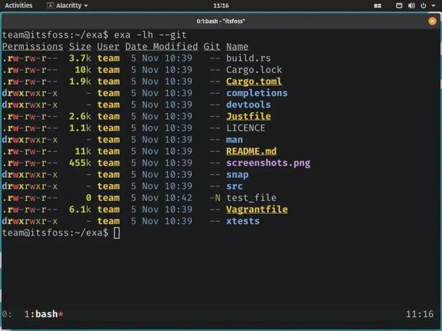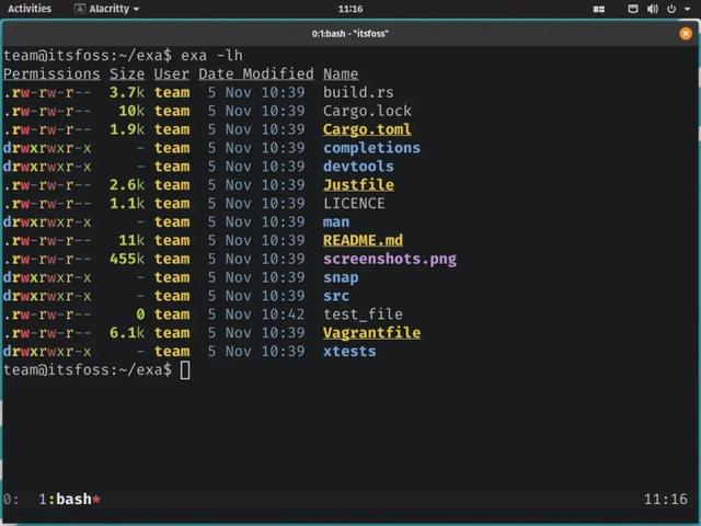 exa被视作从 UNIX 旧时代延续至今的古老的ls命令的一个现代替代品。如其所声称的那样,它有比ls命令更多的功能、更好的默认行为。