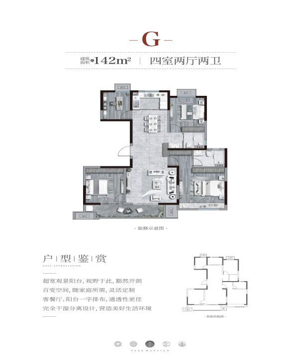 建面约142㎡四室两厅两卫,宽阔舒居成全家人理想生活