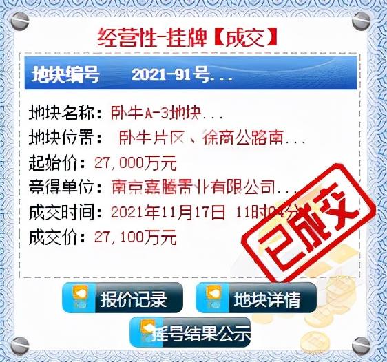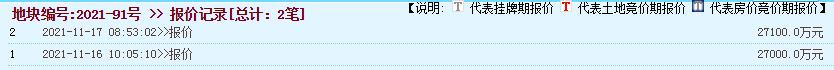 目前,仅有2021-91号地溢价成交。溢价金额100万元。