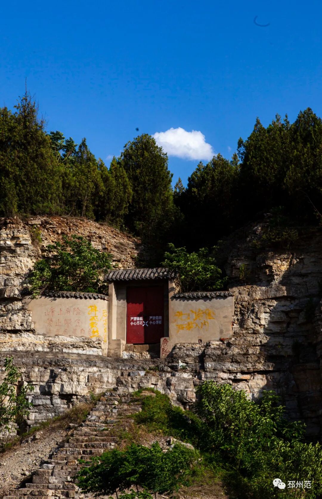 蘑菇峰西北角,有一条陡峭的石砌台阶,可上达峰顶。