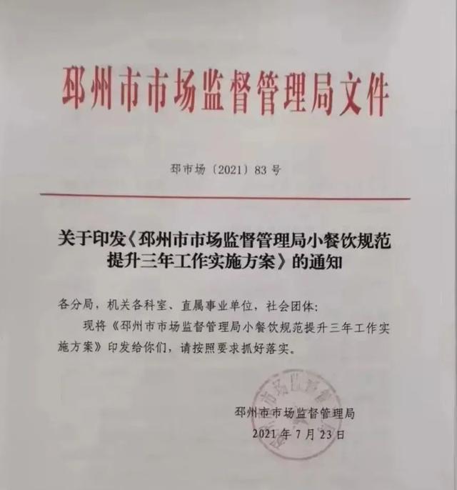 今年以来,邳州市市场监管局坚决贯彻落实市委、市政府决策部署,认真开展我为群众办实事和“两在两同”建新功行动,制定《邳州市市场监督管理局小餐饮规范提升三年工作实施方案》,积极探索小餐饮质量安全提升新路径。