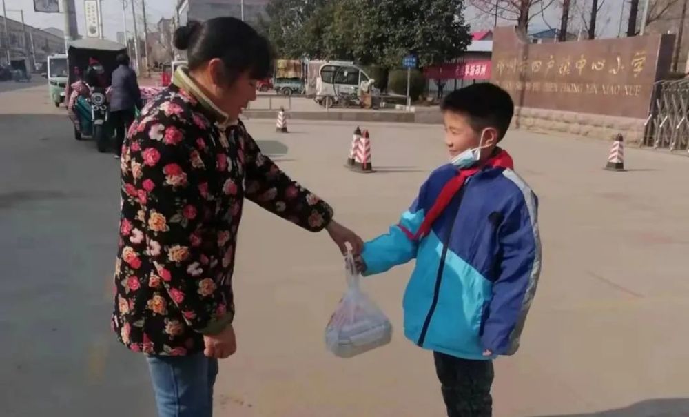 12月6日,初冬微寒。11点30分,邳州市四户镇夏墩村5组的刘新军骑着电动车从家出发,将裹了一层又一层塑料袋的两个饭盒送到两公里外的四户小学。