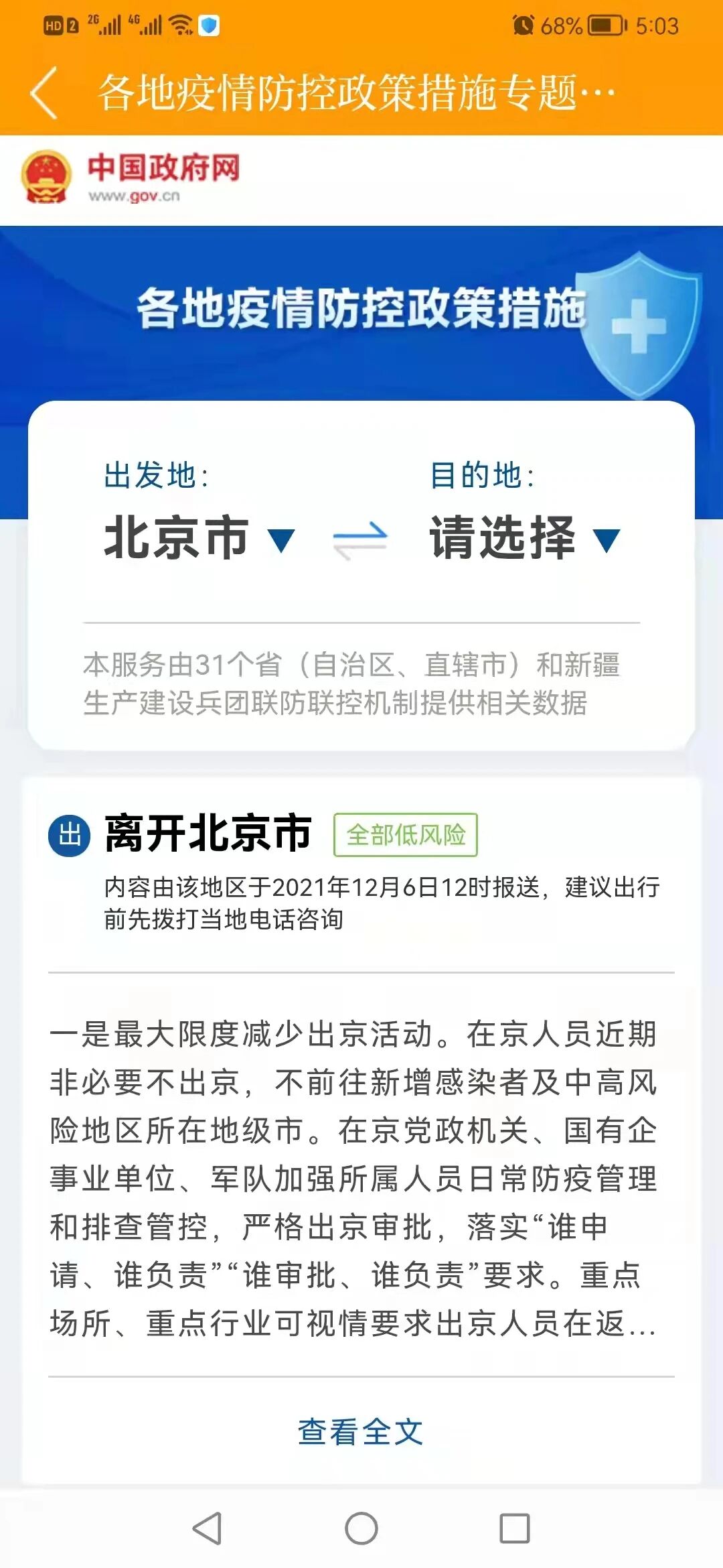 并获取跨地区出行防疫措施