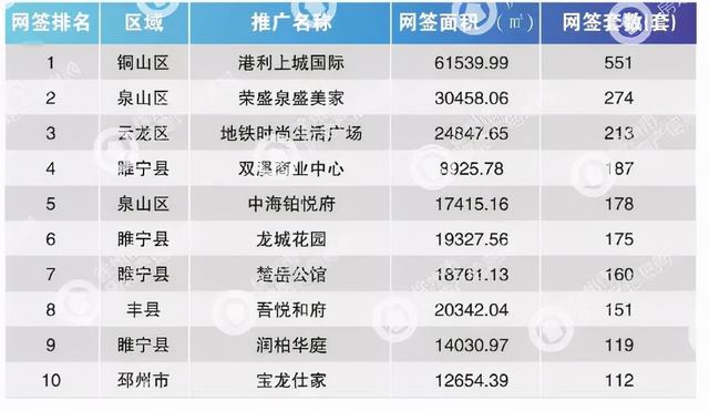 根据房地产销售数据统计:10月徐州商品房网签项目前三名分别为: