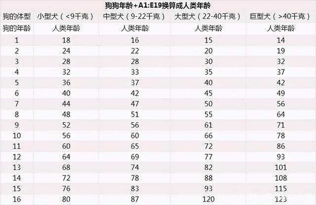 狗狗年龄对照表