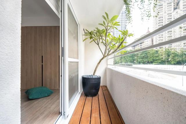阳台改造后,变成了一个简单的空间,铺设了一层防腐木地板,涂上了一层白色,清新优雅的感觉活了过来。老房子被高楼包围着。它就像加固森林的一角,安静而温柔。