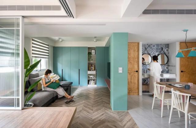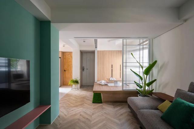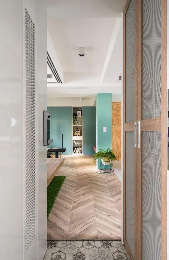 改造后玄关开阔明亮,一个小柜子推门而入。然后你会看到一个清新自然的杏仁饼绿色正对着你的脸,当你走进房子的时候,你会有一种清新自然的美。人们一眼就忘了这是一座有40年历史的老房子。