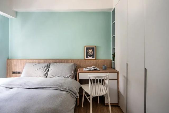 主卧的颜色以浅色调为主,以营造更清新自然的氛围。原木马卡龙营造出奢华舒适的北欧氛围,让进入这个空间的人感到轻松愉快。