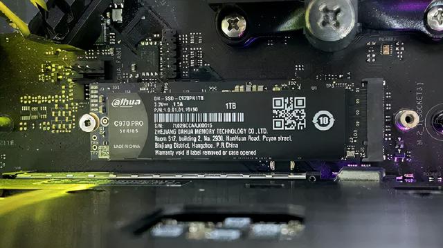 本次测试平台主板板载2个M.2插槽,主插槽直连处理器,通道上使用PCIe4.0×4,支持64Gb/s的NVMe M.2 SSD,能够为玩家提供更强劲的存储速度。为了能够充分发挥大华C970 PRO固态硬盘的性能,在测试时将它插在了直连处理器的M.2插槽上。