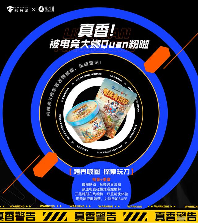 谁说男生就不喜欢嗦粉,又是谁说女生就不喜欢电竞?这一次,以男性粉丝为主的机械师,跟以女性粉丝为主的柳全螺蛳粉破圈联动,热血电竞和地道螺蛳粉碰撞,组成令人着迷的上头CP,为年轻人制造一场电竞与美食相互交融的盛宴!这一跨界联动既可以刷新各自粉丝对品牌固有印象的定位,还可以将这两个品牌的影响力渗透至不同的粉丝圈层,使粉丝能够在品尝螺蛳粉的同时关注到电竞文化,或者在开黑之余感受到来自柳州的地道美味!