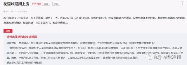 来源发现徐州:近日,有市民在领导留言板咨询荣盛花语城上房问题,官方也给出了回复。
