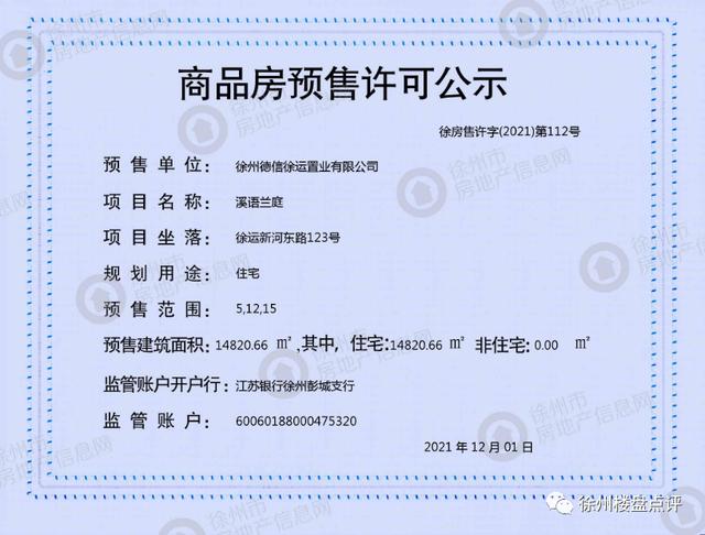 溪语兰庭已于12月1日新领5、12、15号楼126套房源预售