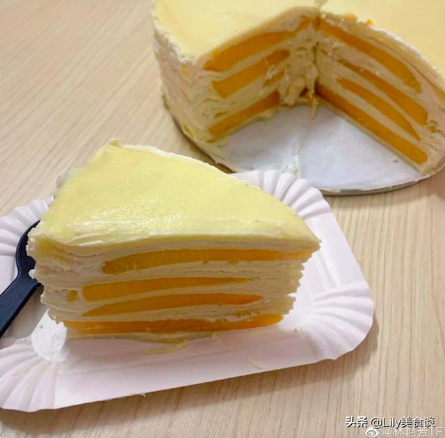 这芒果千层做地看着卖相就跟买的一样一样的,光是看着就觉得很好吃了,虽然芒果千层看着挺简单的,但想要做好吃,这千层皮要足够薄而有韧性,芒果核奶油用的也是要很新鲜的,这样做的才好吃。这个卖相拿去甜品店卖完全没任何问题了。
